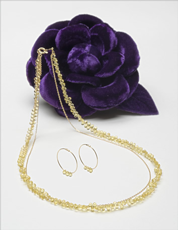 ネックレス/イエローサファイヤ K18yg チェーン40cm 68,000yen(71,400yen) ピアス/イエローサファイヤ フープ直径15mm 18,000yen(18,900yen) コサ−ジュ/ベルベット 10cm×10cm 9,000yen(9,450yen)